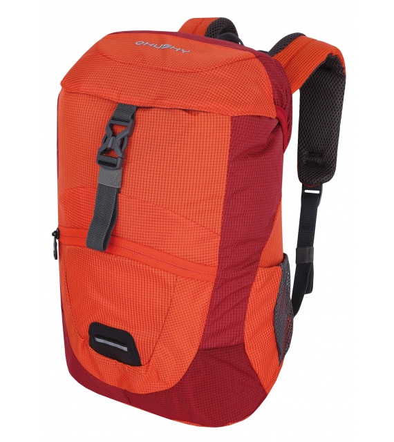 Features of the Junny backpack: AMS back system; breathable padding on anatomically shaped shoulder straps; 1 main compartment; front pocket; side pockets with zippers; lid with pocket; chest strap; reflective elements; internal organizer.