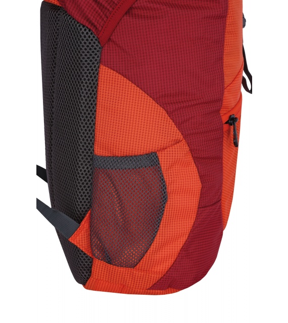 It’s a technical spacer mesh. The mesh is firm, breathable, and highly malleable, which considerably reduces its adherence to your back when you’re sweating. Another advantage is the low weight in relation to the total volume. Added to which it doesn’t absorb moisture, and is perfectly elastic and anti-allergenic.