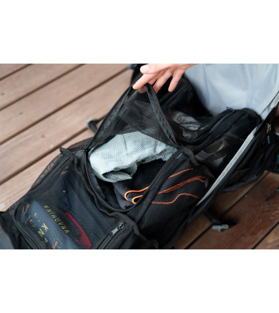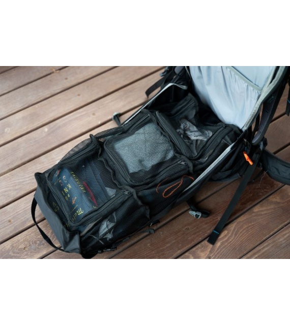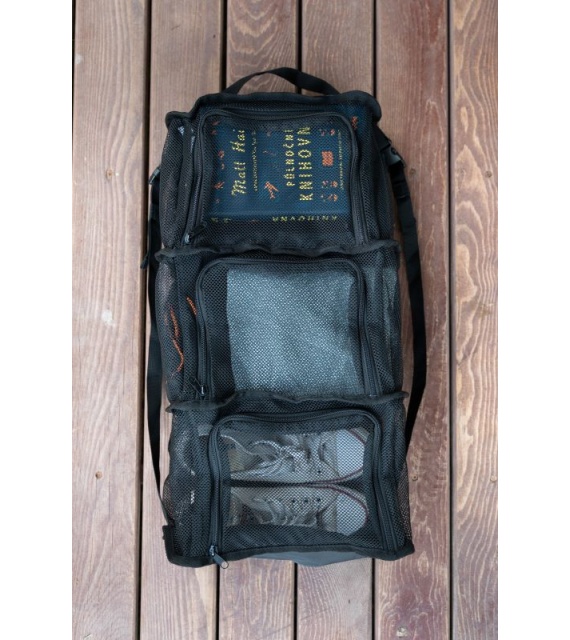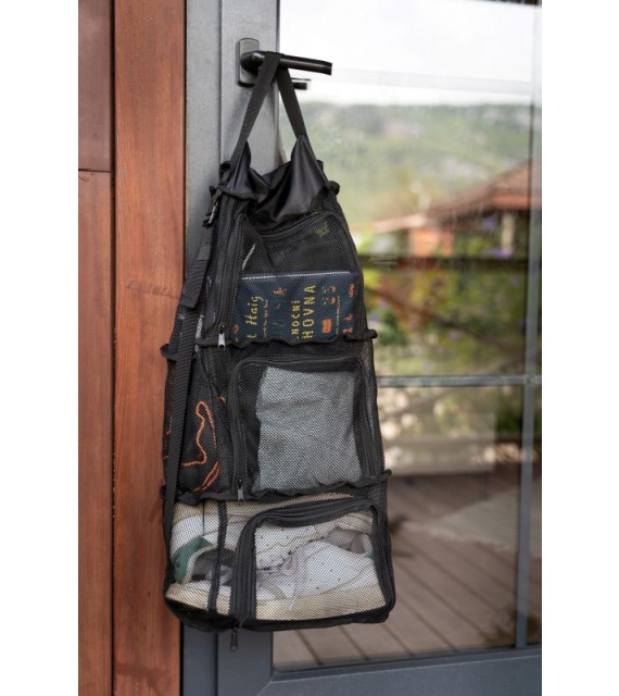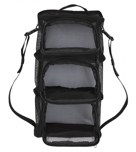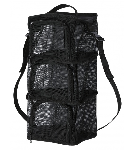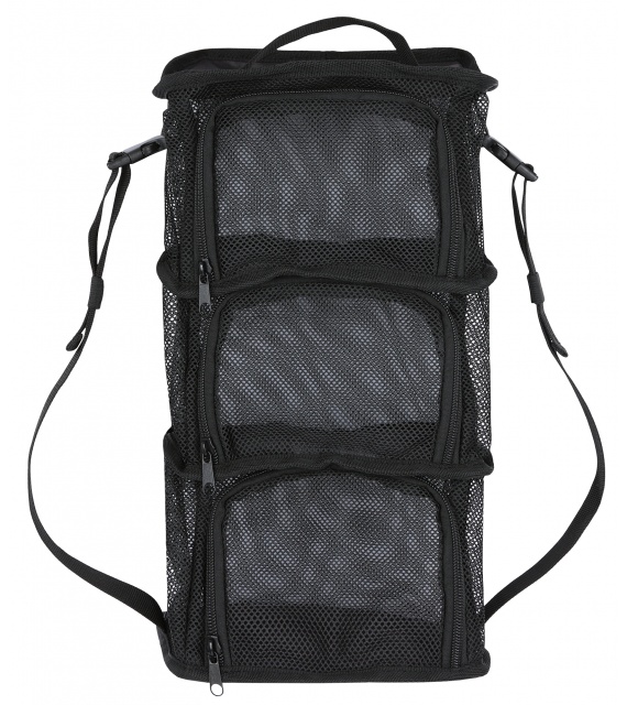 TOWER storage system with its three separate compartments made of breathable mesh keeps your belongings organized. The zippered compartments have sturdy dividers between them. Everything stays in its place and you can keep track of it all.