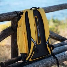 It’s a technical spacer mesh. The mesh is firm, breathable, and highly malleable, which considerably reduces its adherence to your back when you’re sweating. Another advantage is the low weight in relation to the total volume. Added to which it doesn’t absorb moisture, and is perfectly elastic and anti-allergenic.