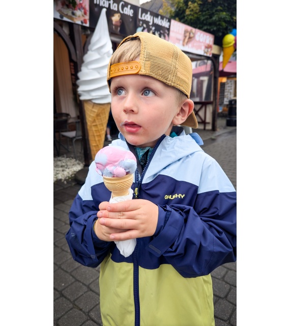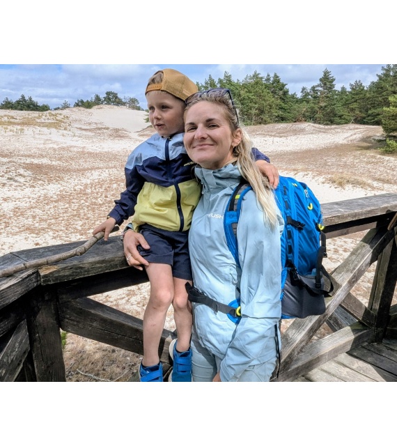 A kids’ functional hardshell jacket with a membrane, suitable for challenging conditions as well as for traditional hiking.