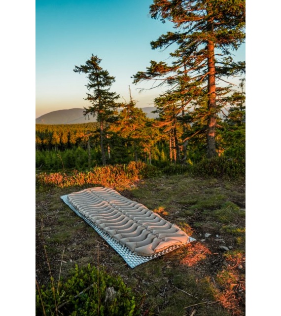 The Feezy inflatable sleeping mat is extraordinarily lightweight and space-saving. You can use it for bicycle touring, trekking and other outdoor activities where you need to save every gram. Thanks to its longitudinal chambers, it provides optimum weight distribution for even greater comfort and good thermal insulation. It will maximize the quality of your rest anywhere, anytime. To inflate it, you can purchase the AIRFLOW electric pump.
