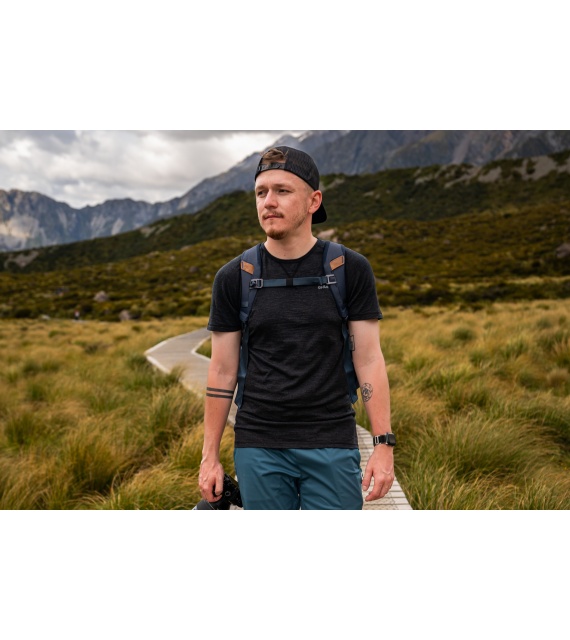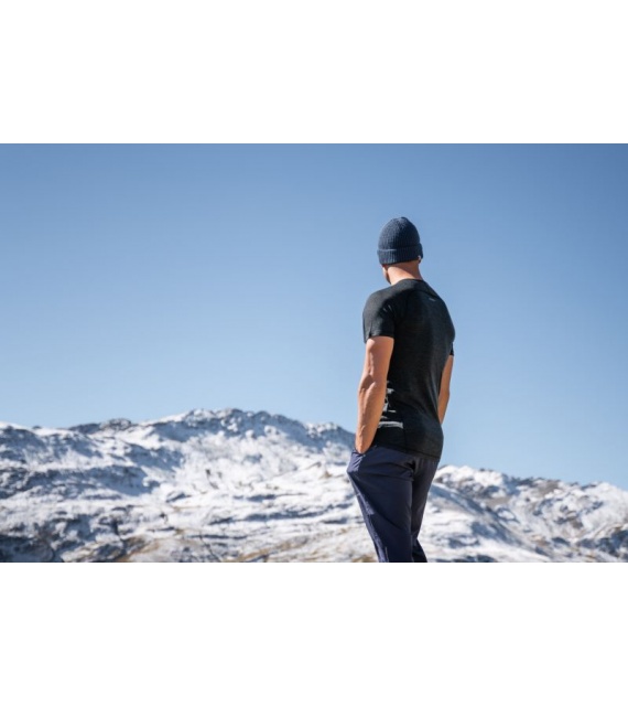 Men’s short-sleeve T-shirt made of 100% merino wool, with antibacterial properties, for all kinds of outdoor activities throughout the year.