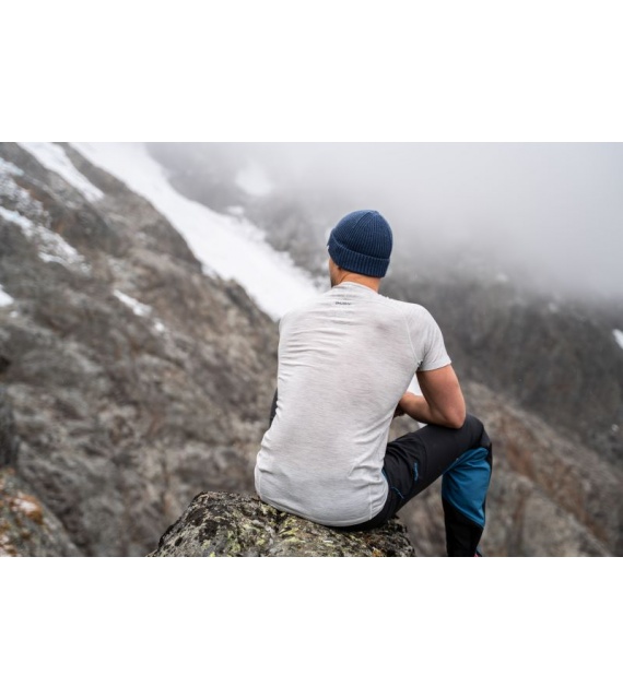 • Perfectly wicks moisture away from the body. Thanks to the structure of the fibre, its insulating properties don’t change, so you won’t get cold even if you get wet.