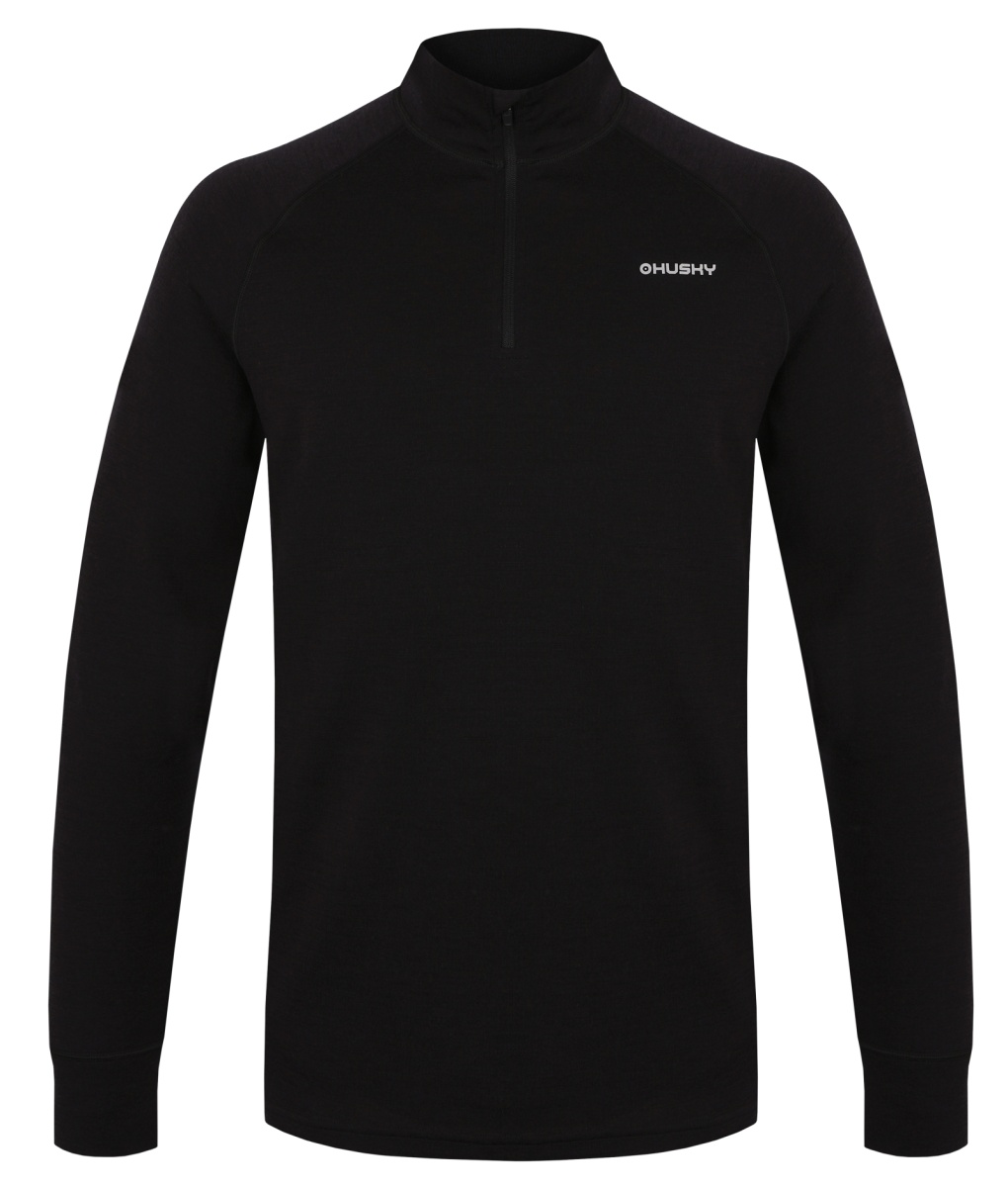 Men's half-zip sweatshirt made from a blend of merino wool and polyester is a great functional piece for year-round wear in all conditions.