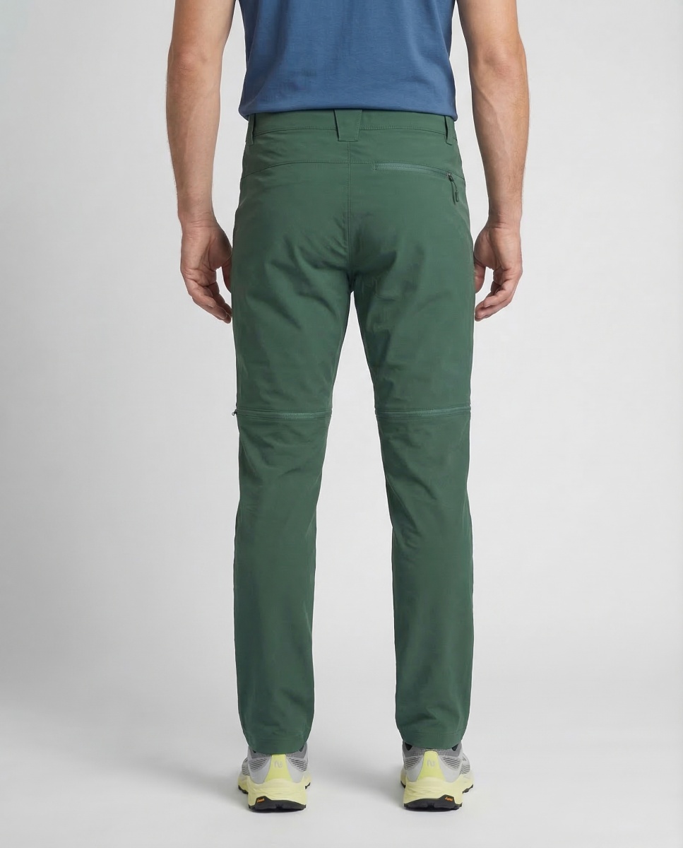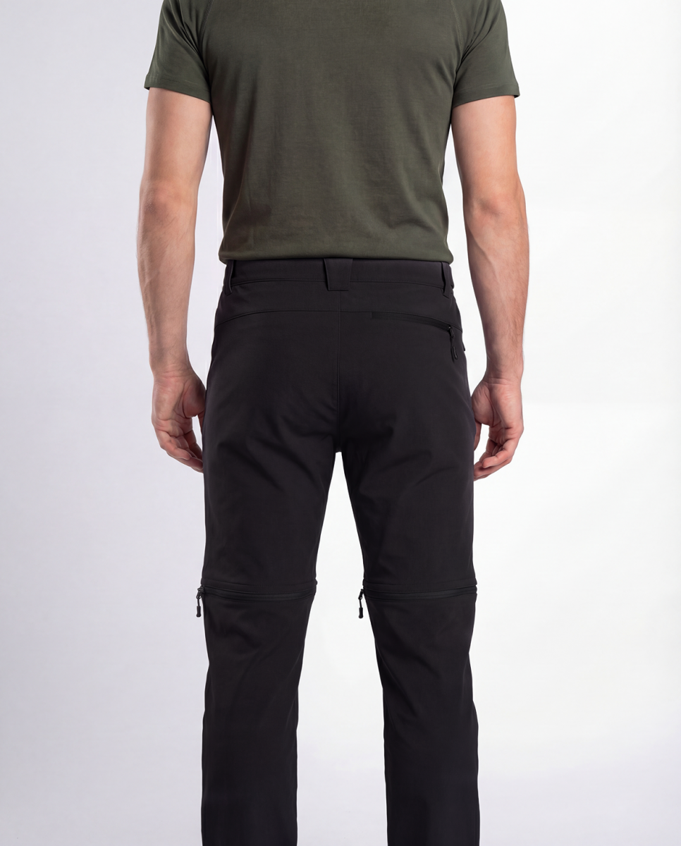Men's elastic outdoor pants with the option to detach the lower part for everyday wear in the city and in nature.