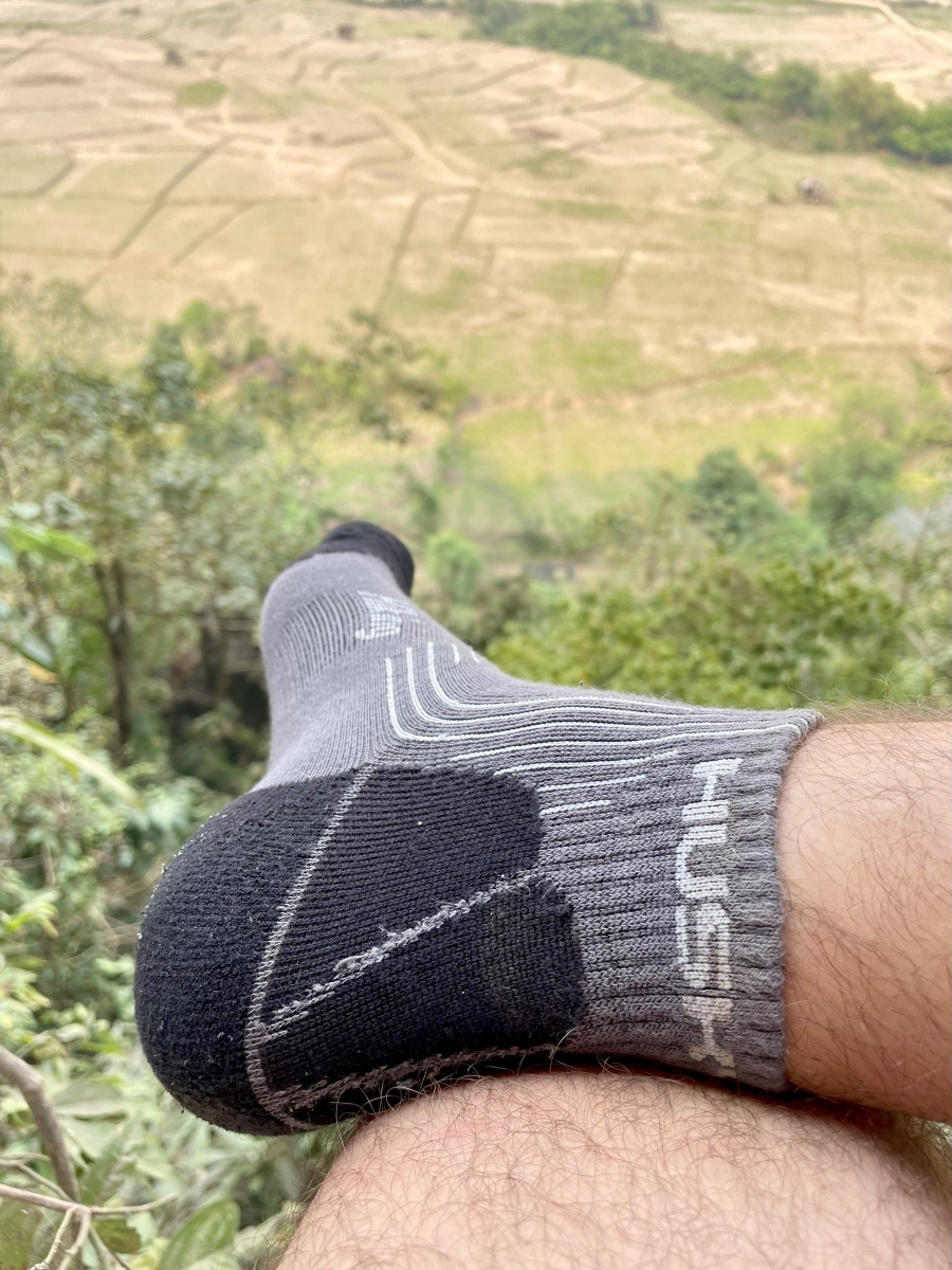 Low, thin socks that reach just above the ankle. They have a reinforced foot area for a soft tread and a reinforced toe area to prevent slipping. They are made of bamboo fibre for excellent breathability and absorption.