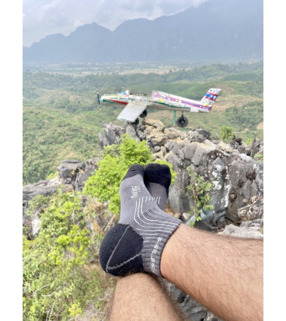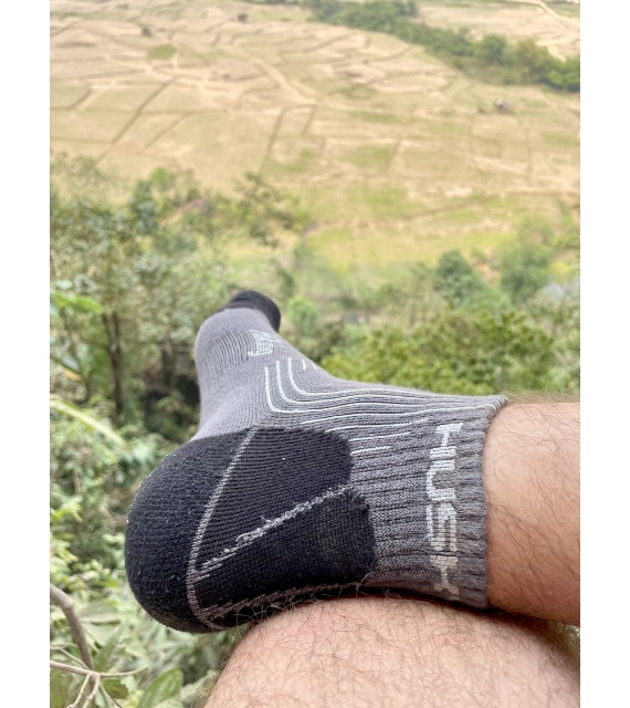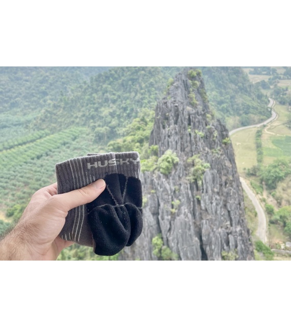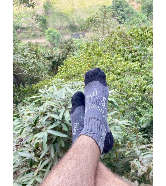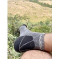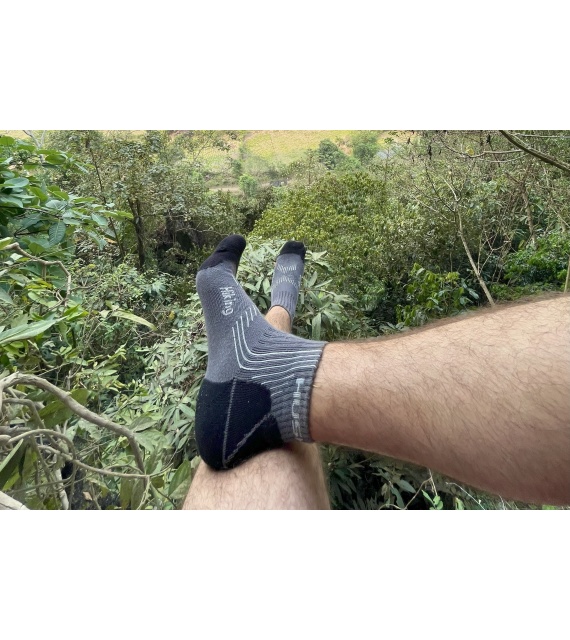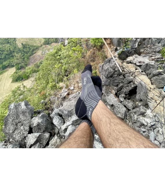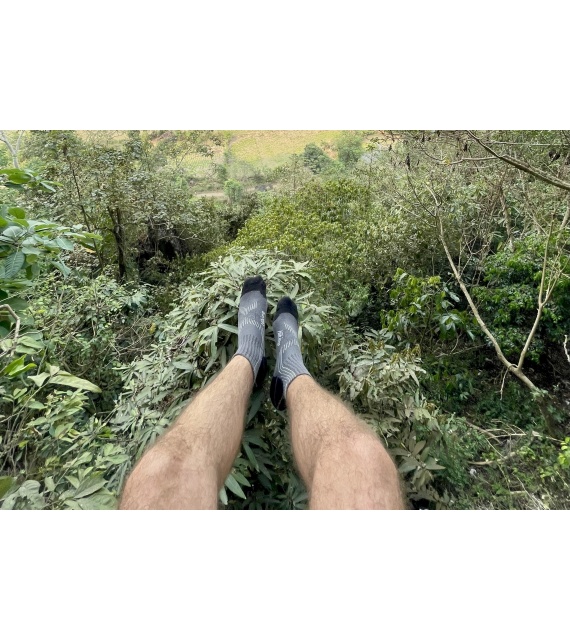 These Hiking socks are made of 66% bamboo fibre, which is a natural material characterized by excellent breathability, great absorption and thermoregulation properties, and a cooling effect. The fibre is also antibacterial and antiallergenic, so it provides comfort during normal everyday wear as well as when doing sports. The bamboo fibre is supplemented with 23% cotton, 8% polyamide and 3% elastane.