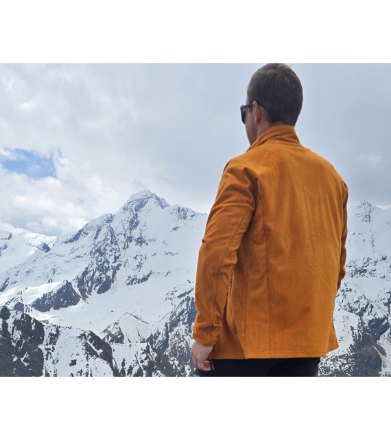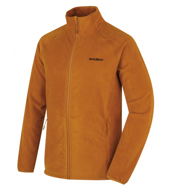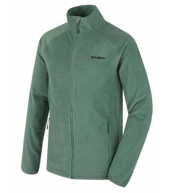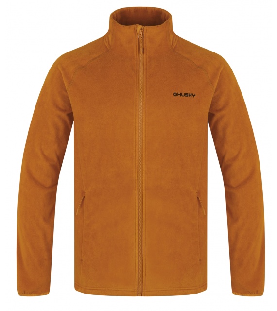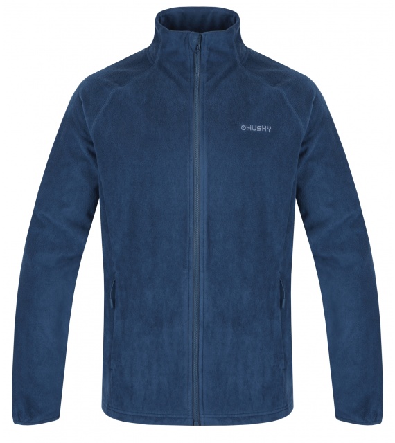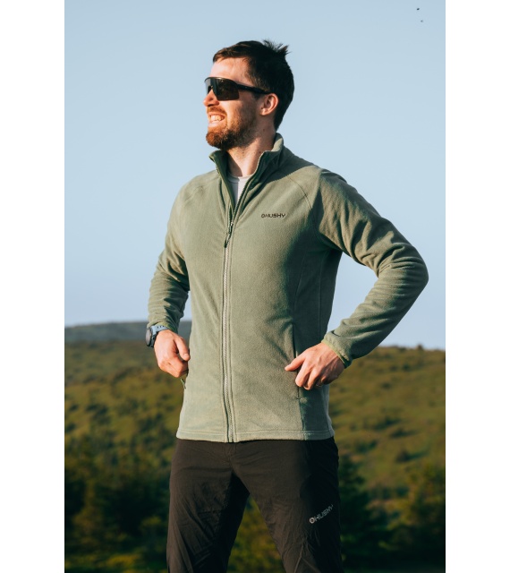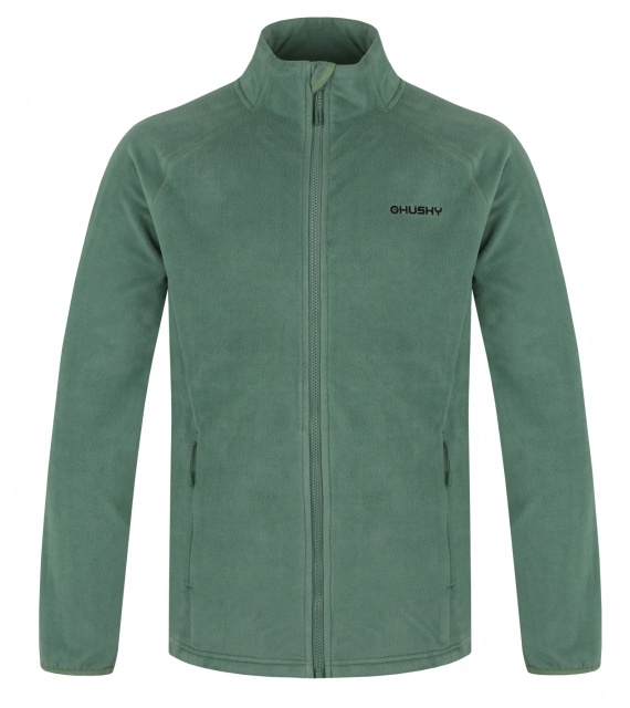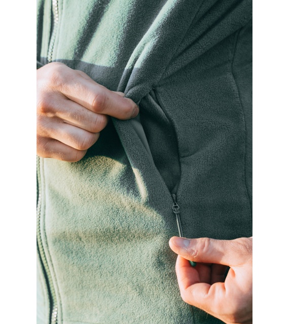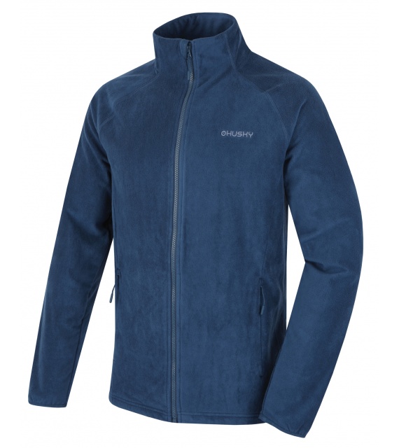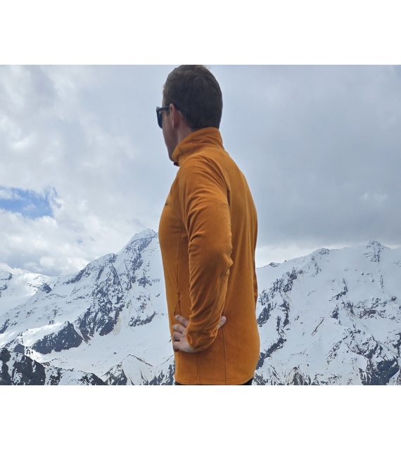 A moderately thick men’s stand-up collar, zippered sweater suitable for various outdoor activities.