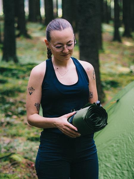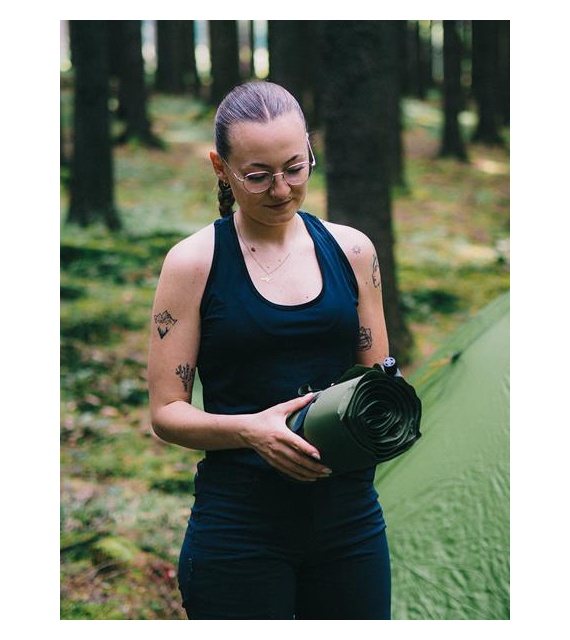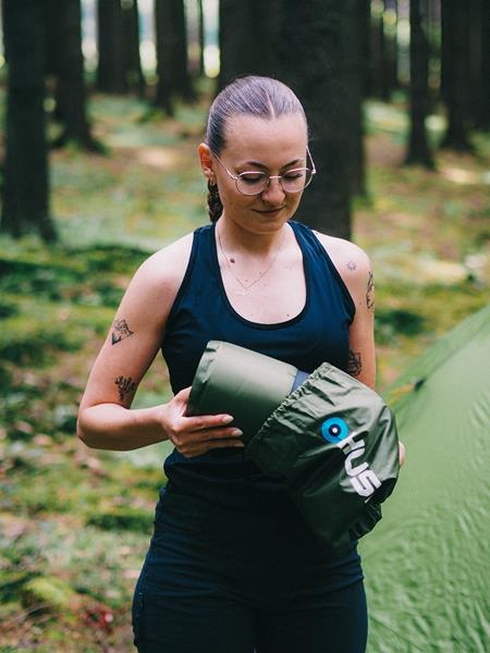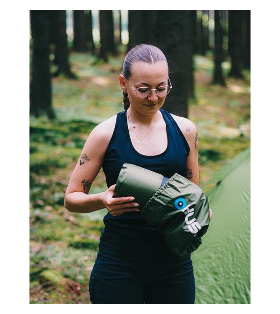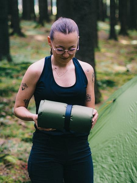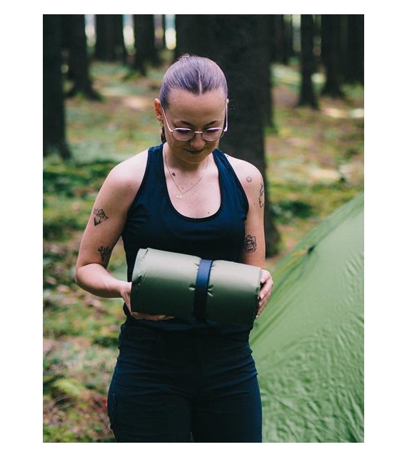 You’ll love the self-inflating Folly sleeping mat when trekking, backpacking or hiking. It is extremely lightweight and saves space. When folded, it fits into any backpack. Thanks to the lightweight and durable material, this model will ensure you have an undisturbed and a comfortable night’s sleep even on hard and cold ground.
