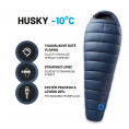Comfort and space are two words that exactly describe the Husky sleeping bag. It is made of high-quality materials that guarantee thermal comfort from spring to autumn during all outdoor activities. The overall effect is complemented by a wealth of clever features and small transport volume.