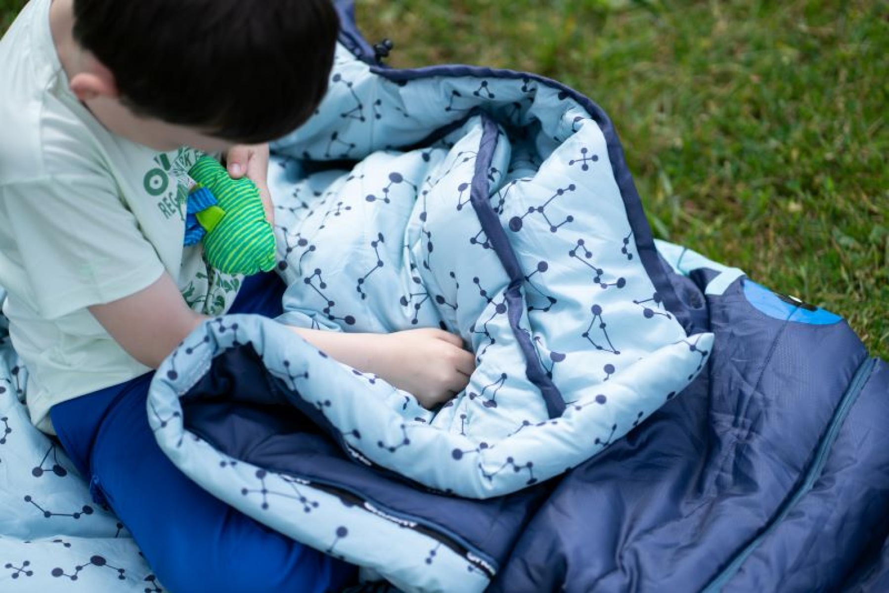 The Kids Magic sleeping bag offers a smart solution that your little traveler will enjoy for many seasons. By simply attaching or detaching the lower pocket-shaped part, it can be shortened or lengthened. In the shorter version, suitable for heights up to approx. 125 cm, the detached pocket serves as a warming foot bag. The longer version can easily be used for heights around 155 cm. The Kids Magic is ideal for children from an early age to teenagers on nature trips, rafting expeditions, and trekking.
