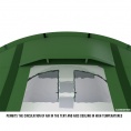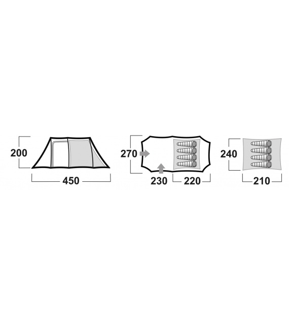 Both tent shells and the floor are made of high-quality materials that guarantee resistance to external influences, very good breathability, and ample comfort. The simple construction with duralumin rods also ensures excellent stability. It is also possible to purchase an awning to cover the entrance.