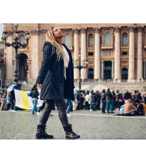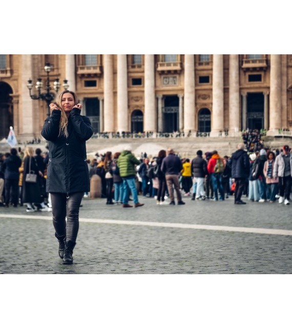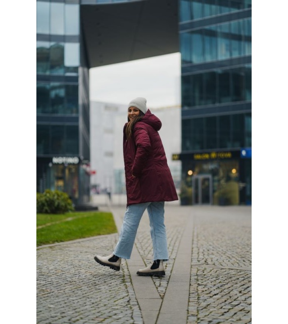 medium insulated women’s hardshell hooded coat is not only stylish and comfortable, but also highly functional. Thanks to the water-resistant membrane used, you will not be surprised by adverse weather on the way to work, a walk around town or a trip to the country.