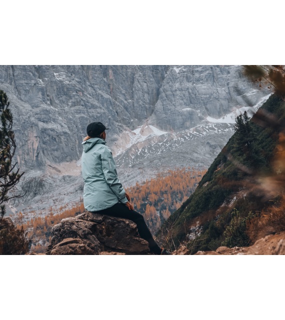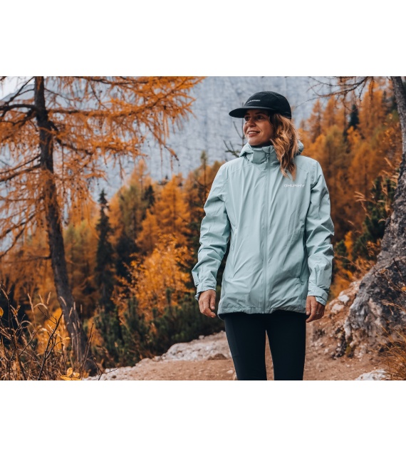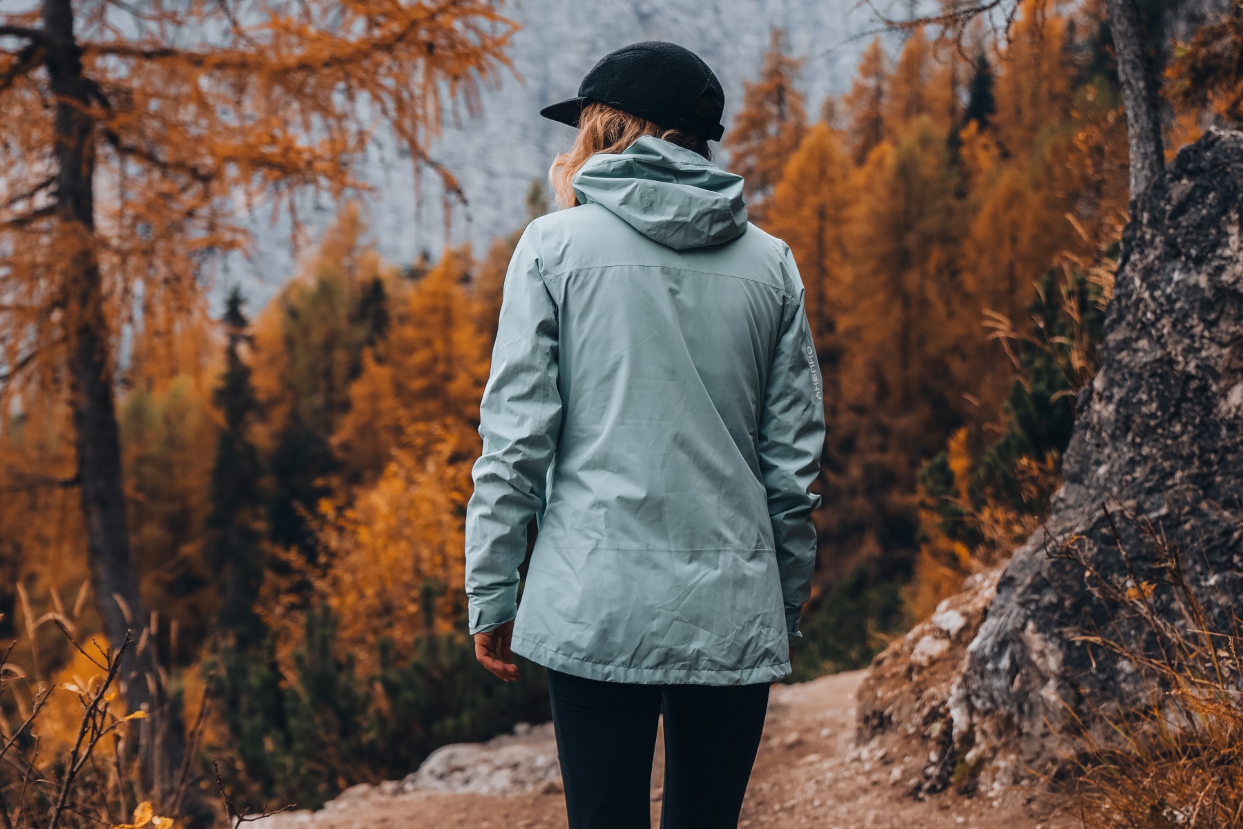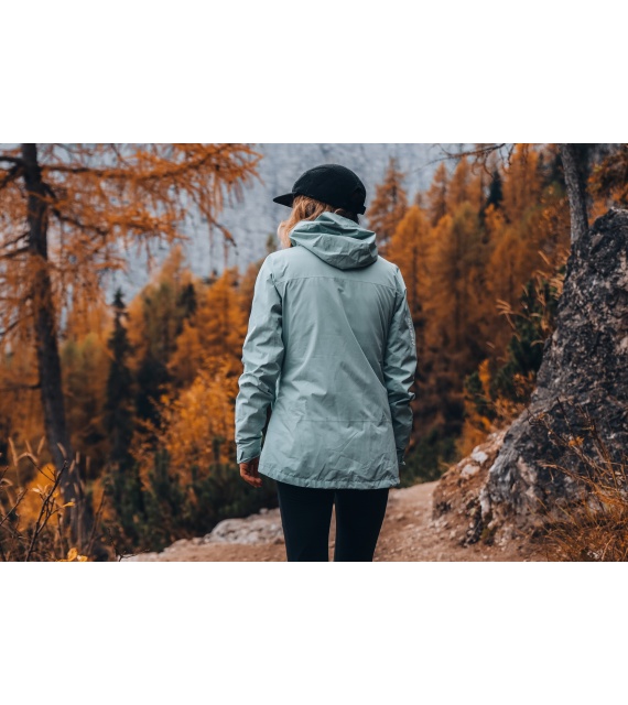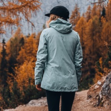 A women’s functional membrane jacket, suitable for challenging conditions, traditional hiking and around town.