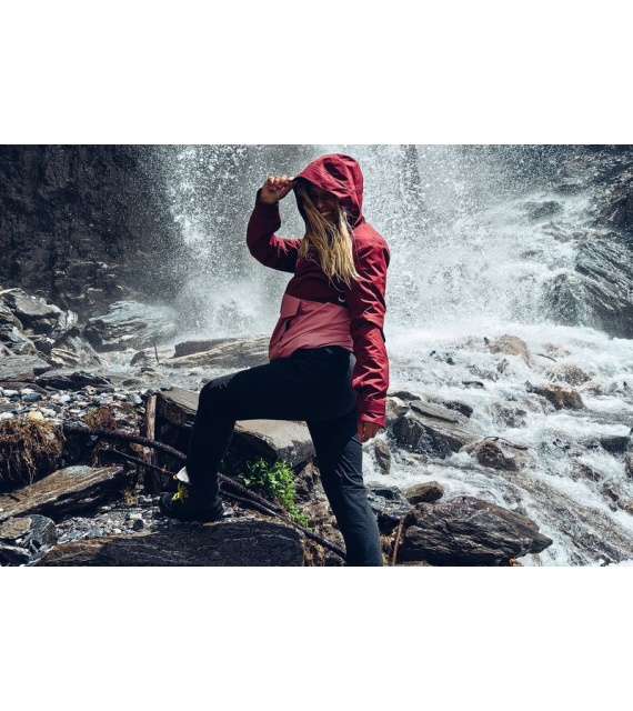 The comfortable and breathable women’s outdoor jacket Nabbi L is suitable for both demanding conditions with extremely bad weather and for everyday wear. We’ve made this highly durable and stylish hooded model from a 3-layer laminated material with a water column of 20,000 mm, so combined with a quality DWR finish, it’ll protect you perfectly from wind and rain.