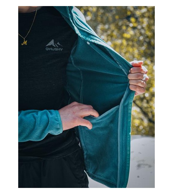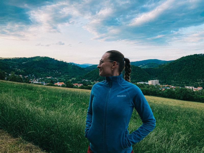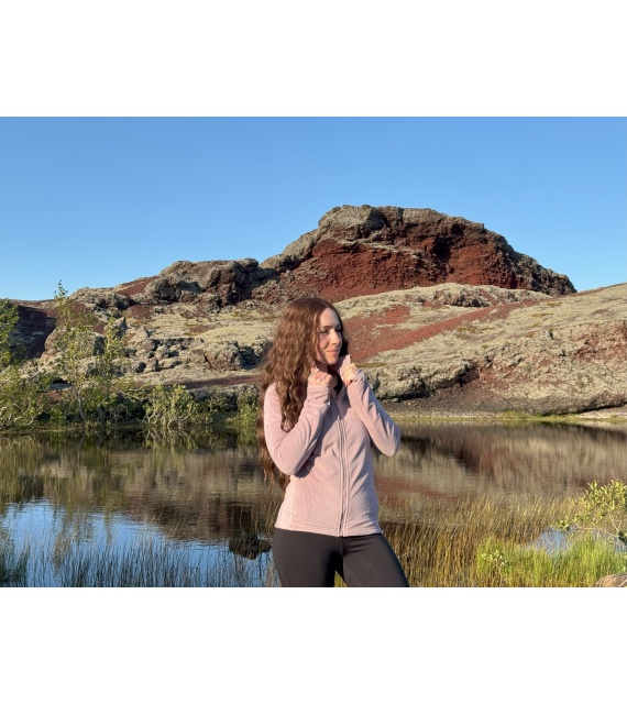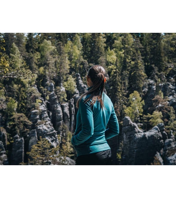 The Aflee L women's sweatshirt is a fresh novelty this season and is ideal for active women looking for a modern, lightweight, and functional sweatshirt that is both comfortable and stylish as a mid-layer for the outdoors and the city. The sweatshirt combines technical material with a fashionable design and a sporty cut, adapted to the female figure while respecting the need for freedom of movement.