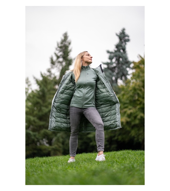 The insulated women's Narvik L coat with a hood is a great warm and comfortable piece designed for everyday wear in the city and outdoor activities. Thanks to high-quality materials, it will protect you from cold, wind, and moisture. It offers not only functionality but also a fashionable cut with an extended back and a subtle design. Get ready for winter in style!