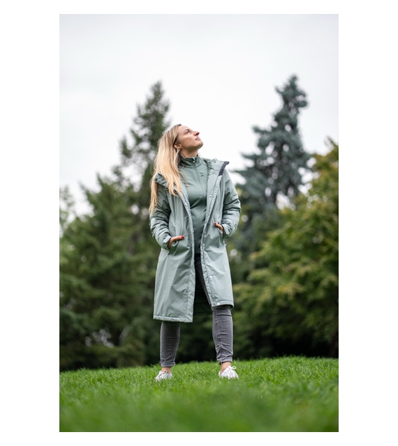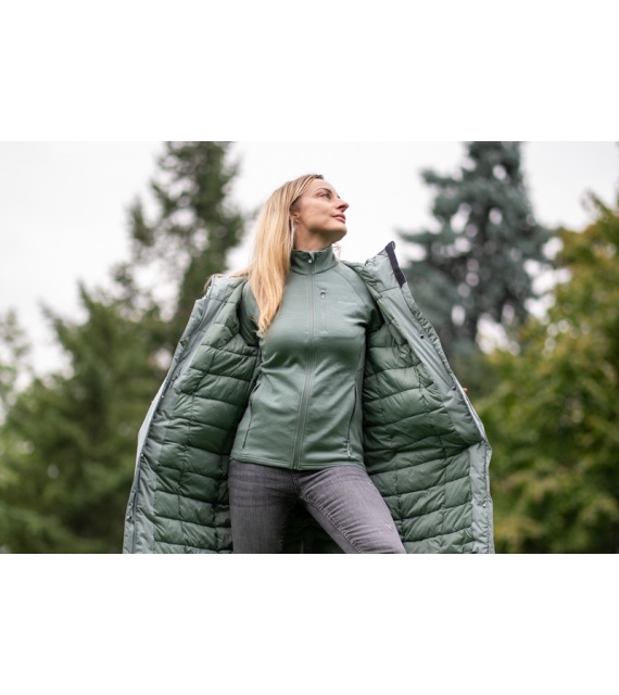 The insulated women's Narvik L coat with a hood is a great warm and comfortable piece designed for everyday wear in the city and outdoor activities. Thanks to high-quality materials, it will protect you from cold, wind, and moisture. It offers not only functionality but also a fashionable cut with an extended back and a subtle design. Get ready for winter in style!