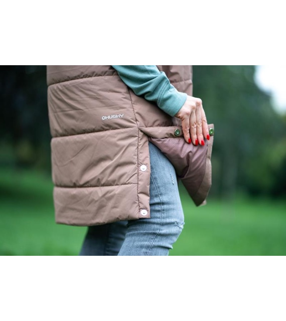 The long women's quilted vest with a hood NILO L is a versatile piece that you must have in your wardrobe. This comfortable and insulated vest with a lining and membrane will accompany you on city walks and during various outdoor activities. A functional yet stylish accessory in a quilted design.