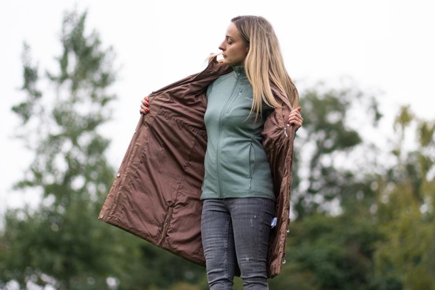 A long zip-up vest suitable for hiking and city wear on cooler days.
