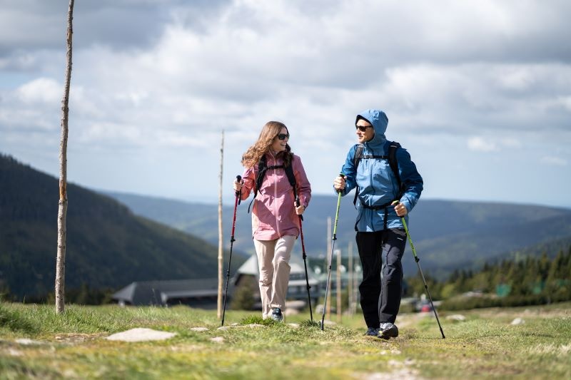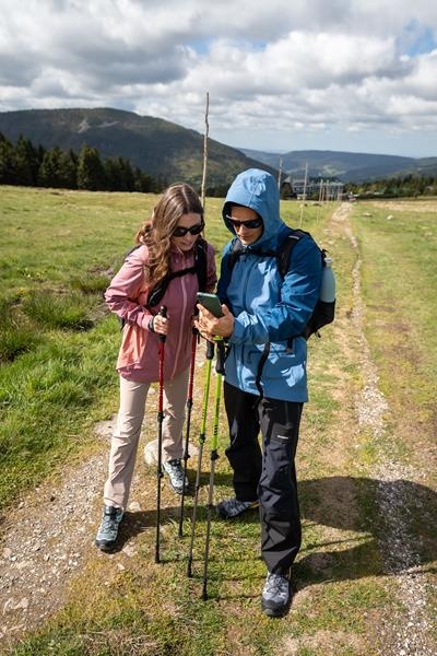 A multifunctional women's outdoor jacket with a hood for year-round use, suitable for both city wear and outdoor hiking.