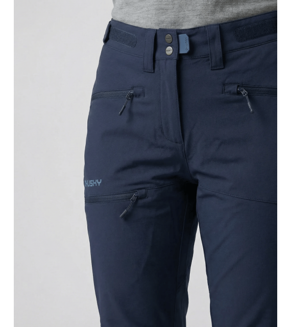 You can confidently wear the stronger, durable women's outdoor pants Kabuki L made of technical fabric for high-mountain hiking in challenging conditions. The breathable material and sophisticated cut allow you to move comfortably even during all-day wear. For waterproofing, the Husky Tech Stretch Plus membrane with a 20,000 water column rating is used, which, combined with a quality DWR treatment, will keep you dry and warm.