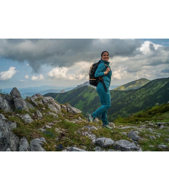 Women's softshell pants Kaila L you will use all year round for various outdoor and sports activities – for trips, cross-country skiing, cycling, and in the woods. The pants have a modern, anatomically shaped cut that follows the female figure without restricting movement. We made them from high-quality materials, they are light, flexible, and ready for anything – from a morning run to an evening walk.