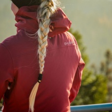 A women’s non-insulated softshell jacket for various outdoor activities.