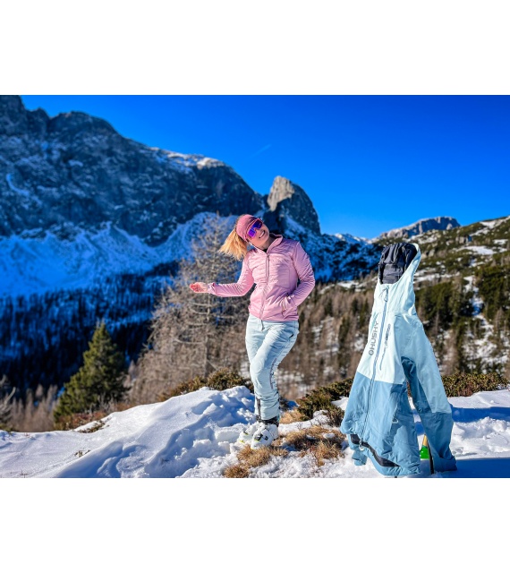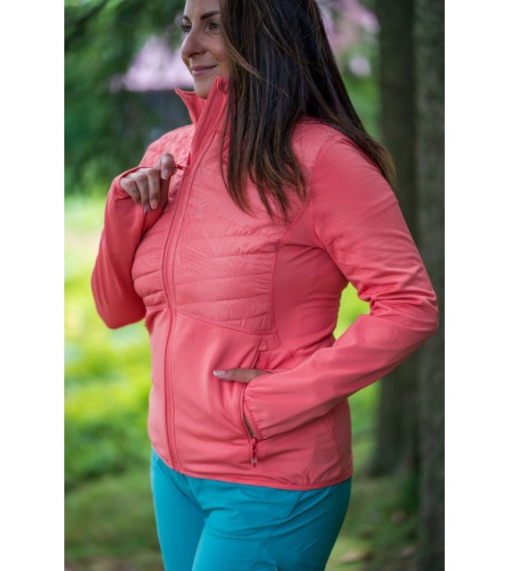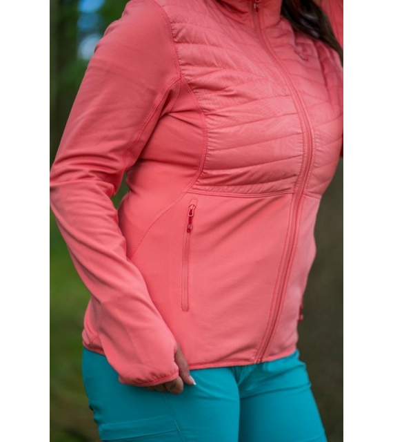 • Part of the body and the shoulders are covered by an ultralight fabric with a lightweight filling – panels combined with a quilted pattern and special all-over print